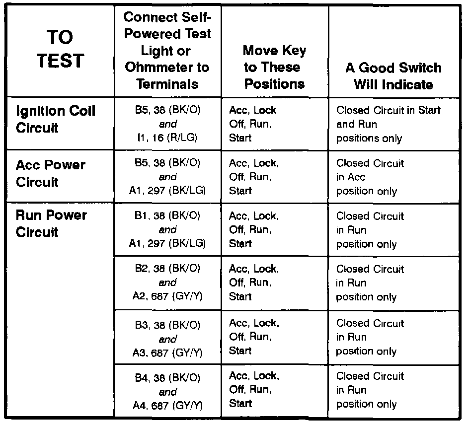 Ignition Switch Continuity Test