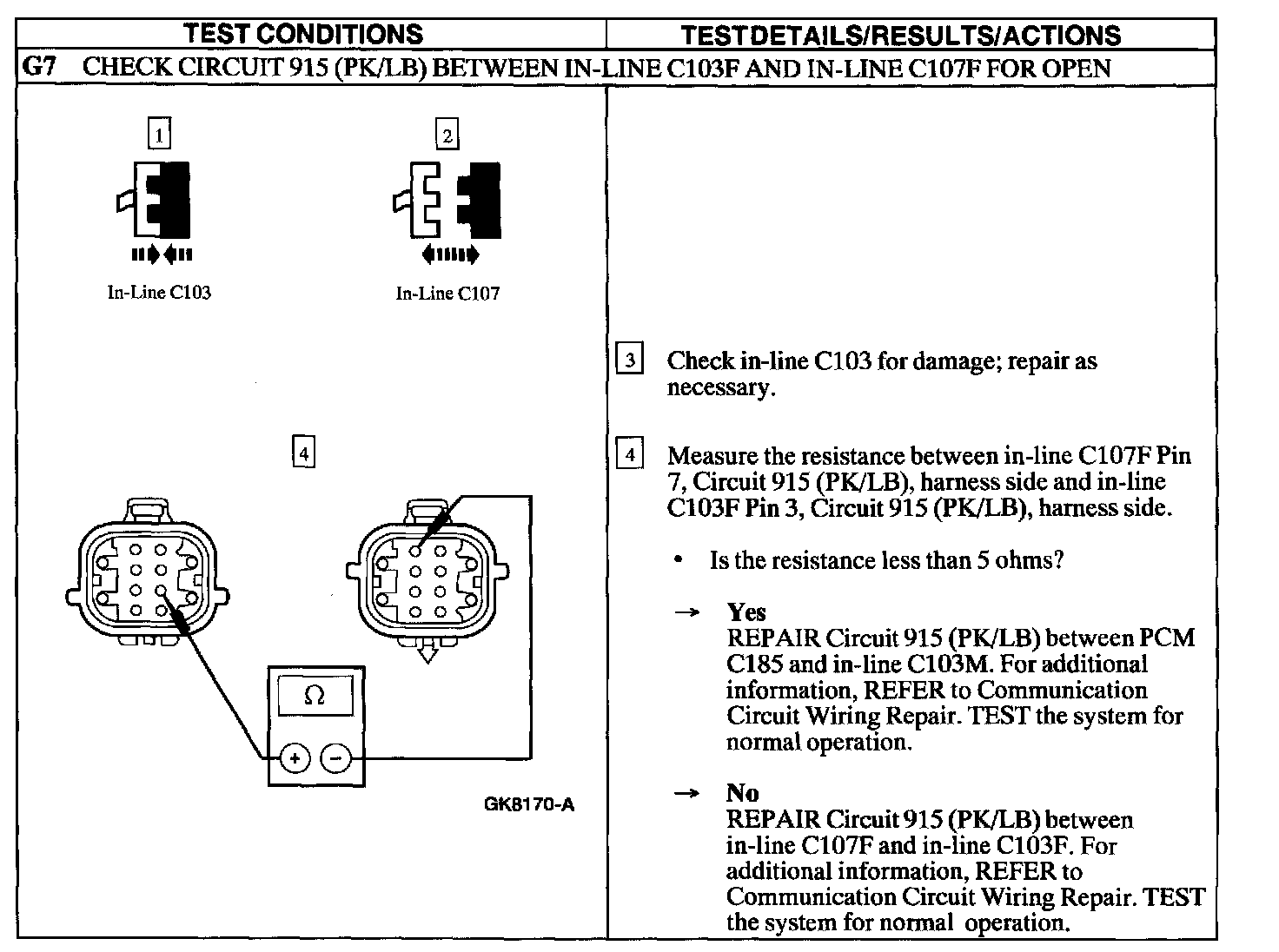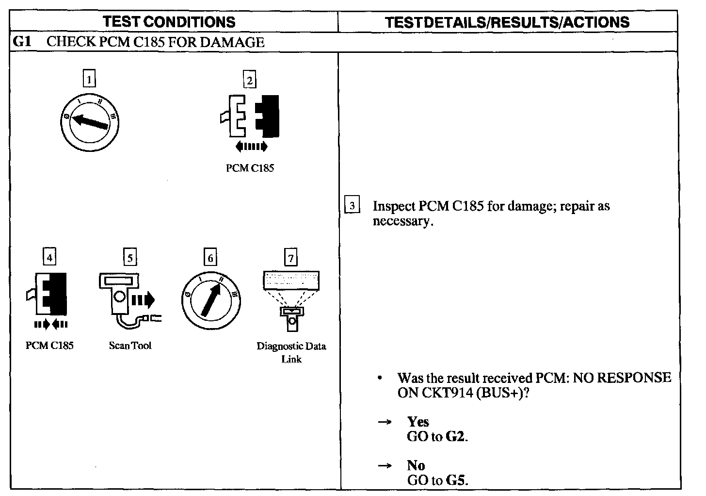 Test G: PCM Module Does Not Respond To The Diagnostic Tool