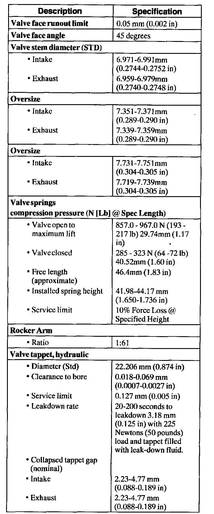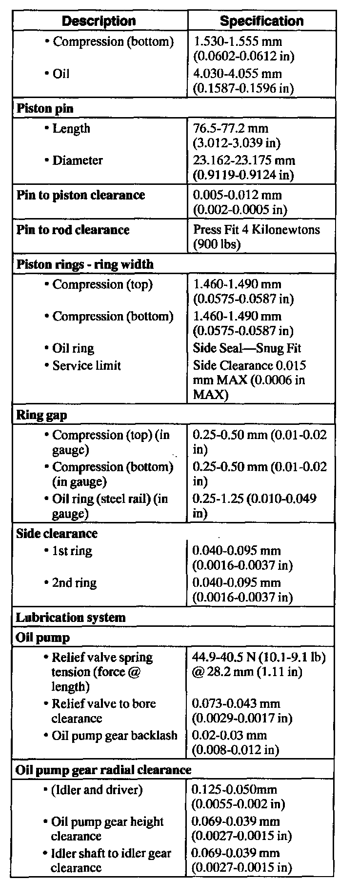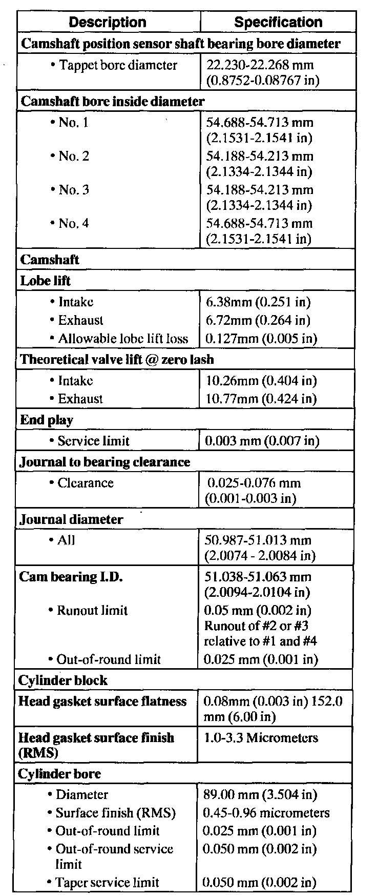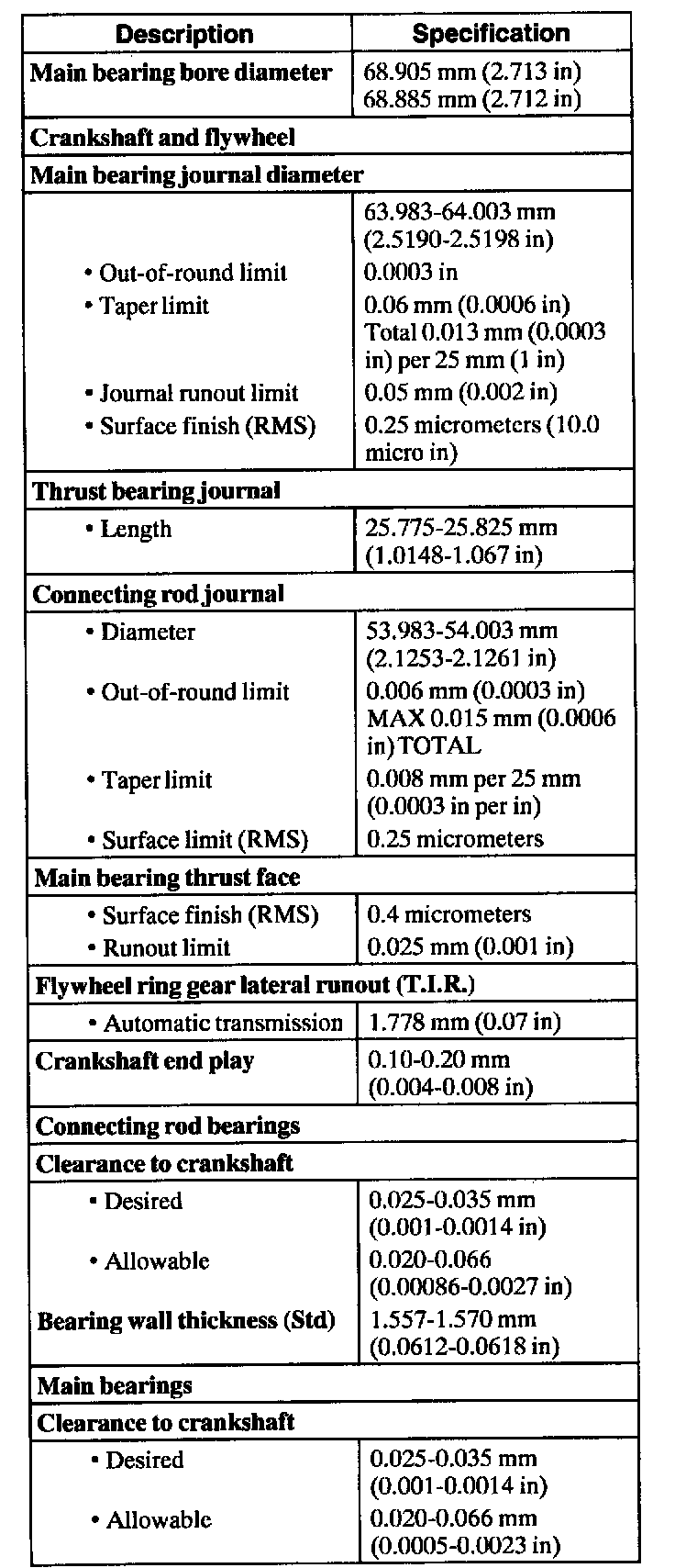 Engine General Specifications