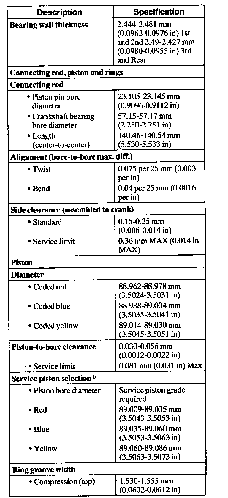 b When replacing pistons, measure the cylinder bore as described in Engine; Service and Repair; General Procedures. Install the indicated service piston.