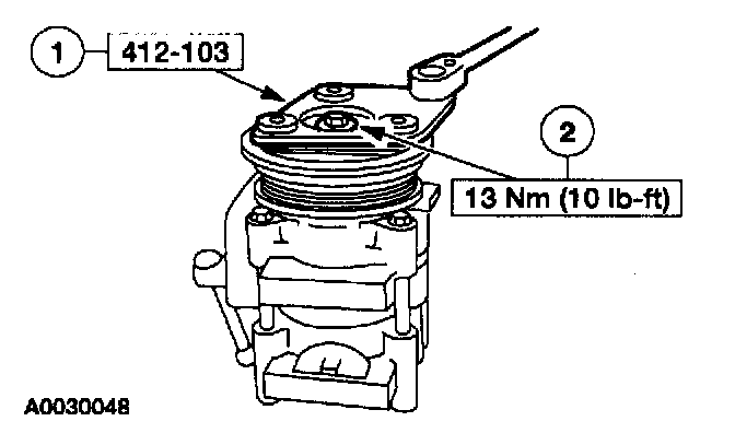 CAUTION: Do not use air tools. The A/C compressor clutch field coil can be easily damaged.