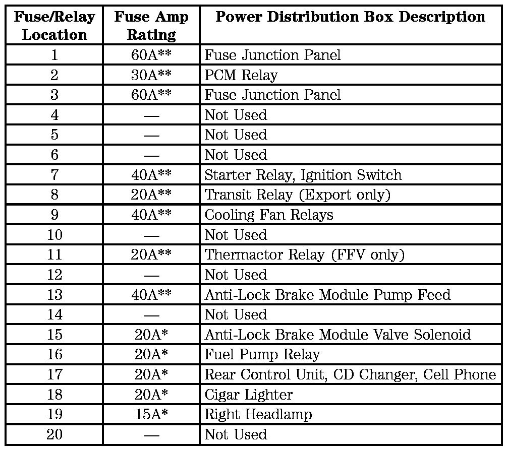 ALLDATA Editor's Note: Ford identifies this one component by 2 different names. Users have reported success comparing these images to determine Application/ID or Location of Fuses and Relays with in the Battery Junction Box/Power Distribution Box.