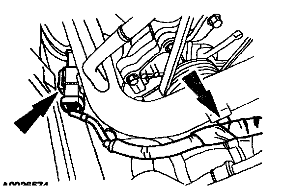 7. Disconnect the oxygen sensor connector retainer and harness pin-type retainer.