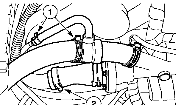 1 Disconnect the upper radiator hose and the engine vent hose, and position aside.