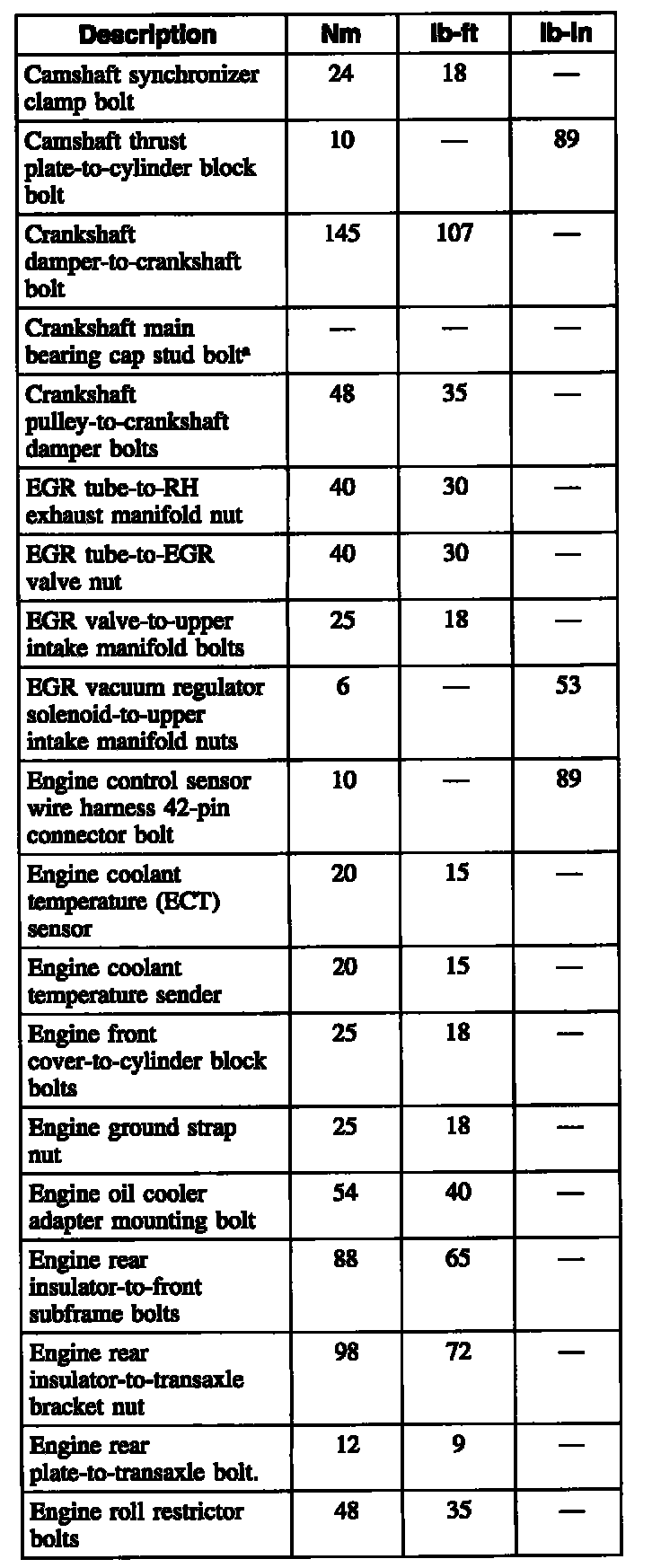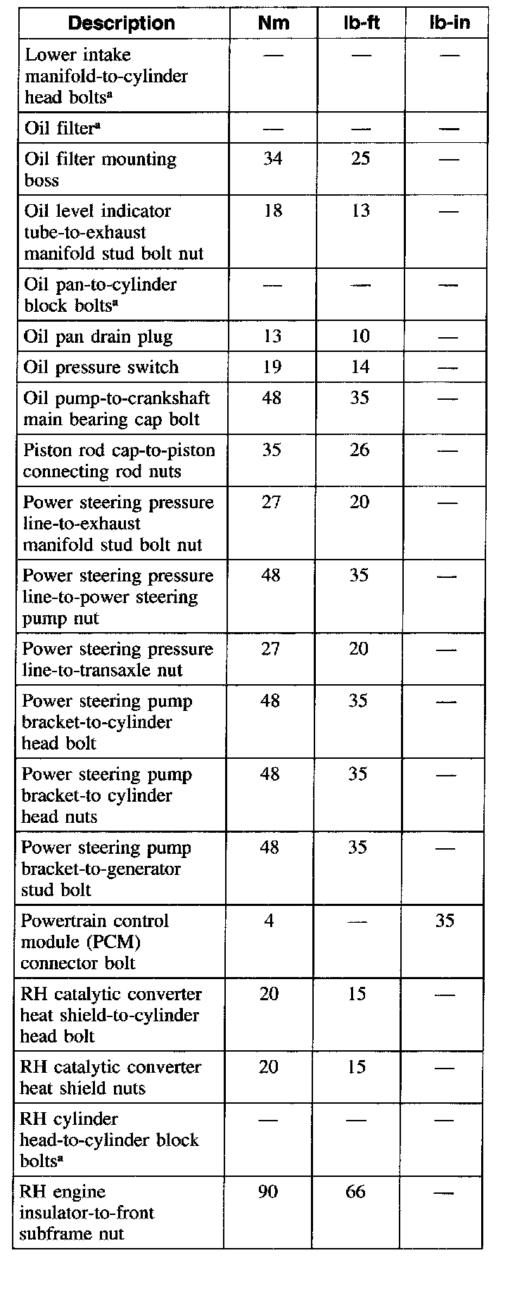 Connecting rod cap nuts 35 Nm (26 ft. lbs.)