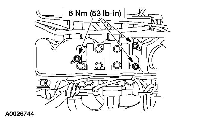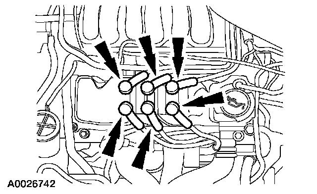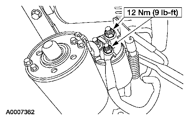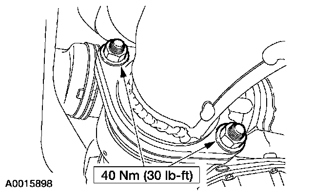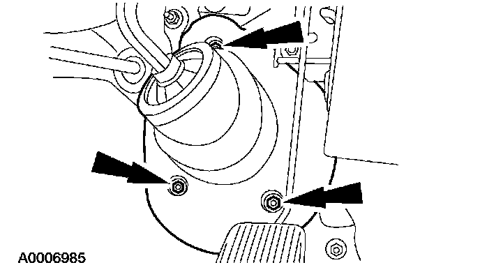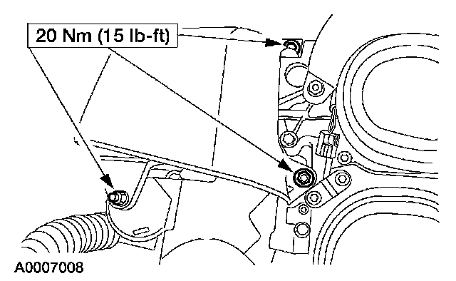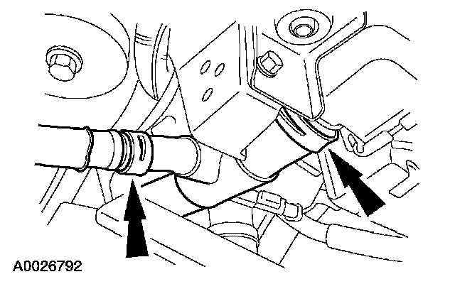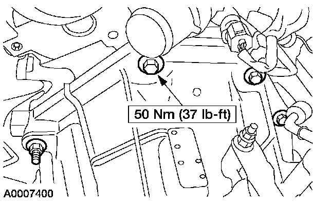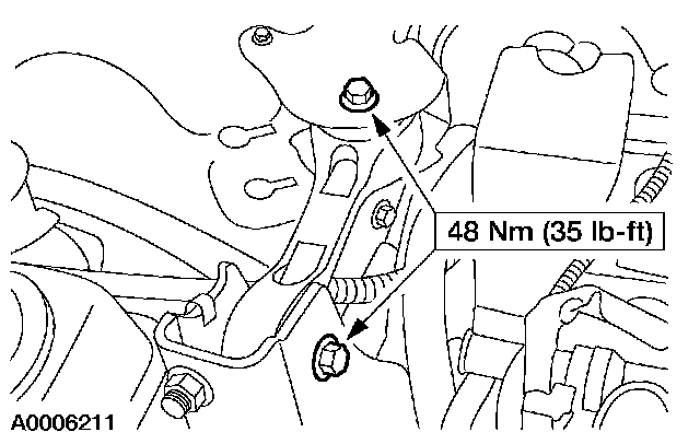 9. Install the two RH engine support insulator-to-transmission bolts.