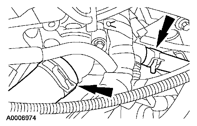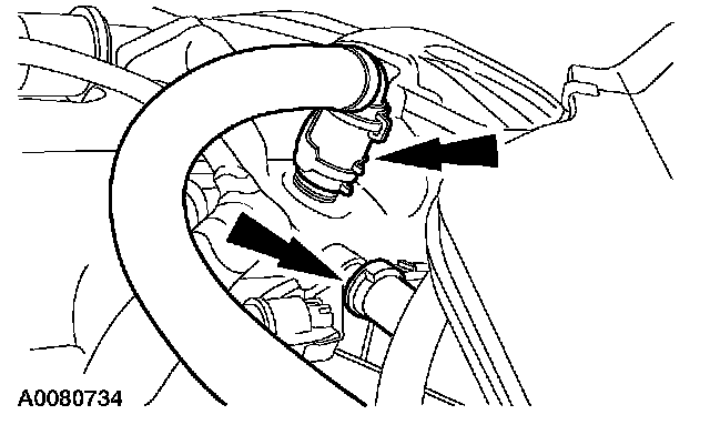 51. Connect the upper radiator hose and heater hose to the thermostat housing.