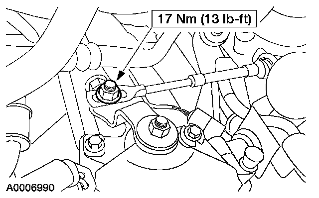 44. Install the engine roll restrictor brace and the nut and bolt.