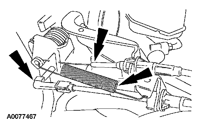 57. Connect the accelerator cable, speed control cable and throttle return spring.