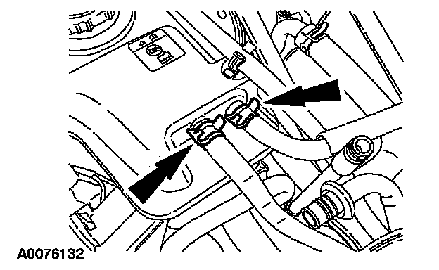4. Clamp off and disconnect the coolant hoses at the degas bottle.