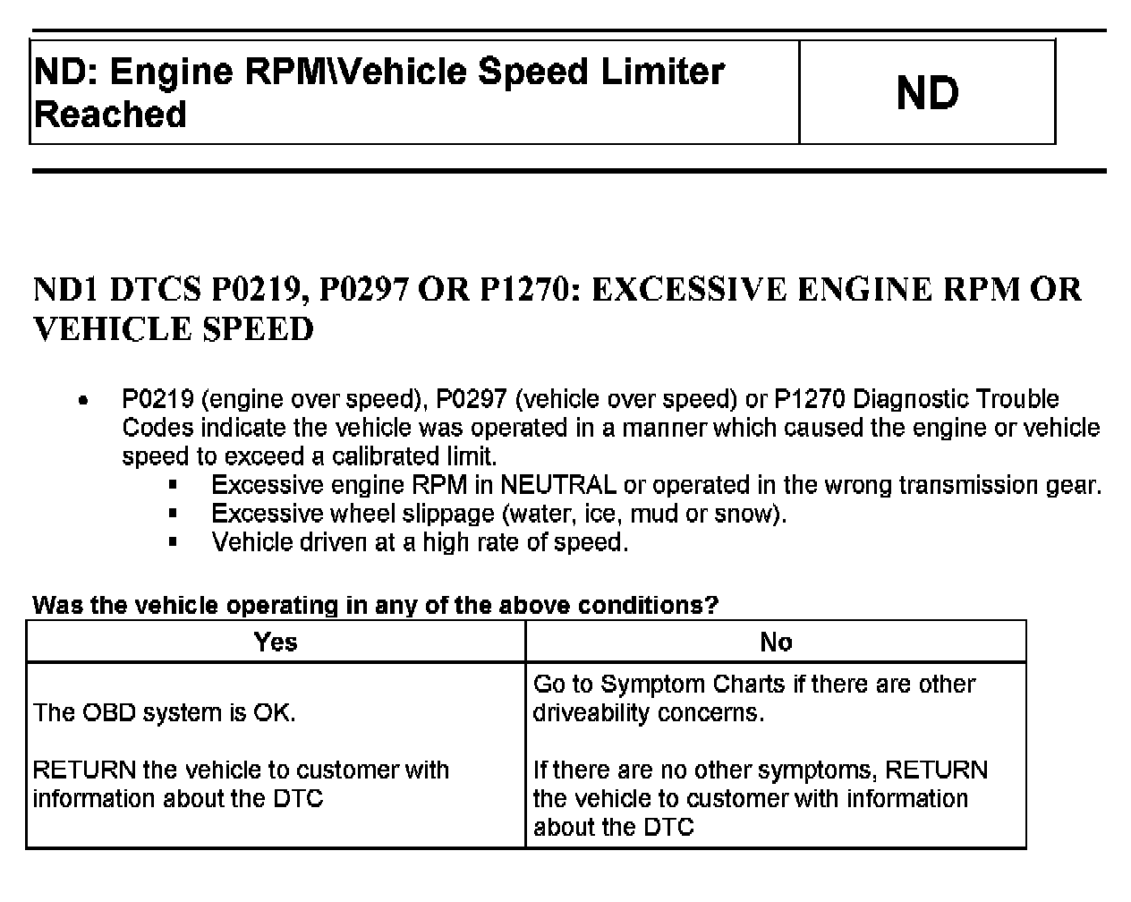 PINPOINT TEST ND: ENGINE RPM\VEHICLE SPEED LIMITER REACHED