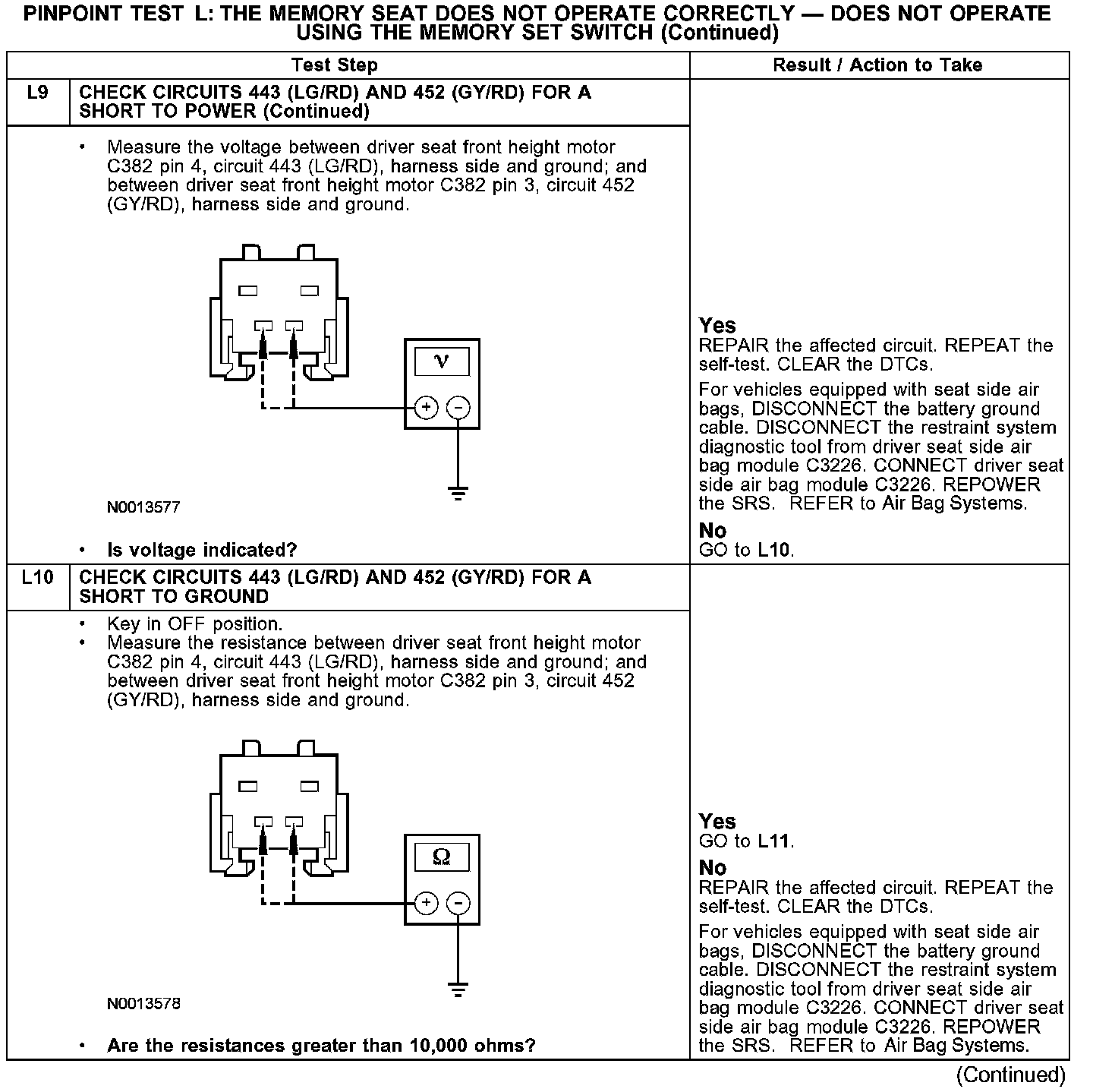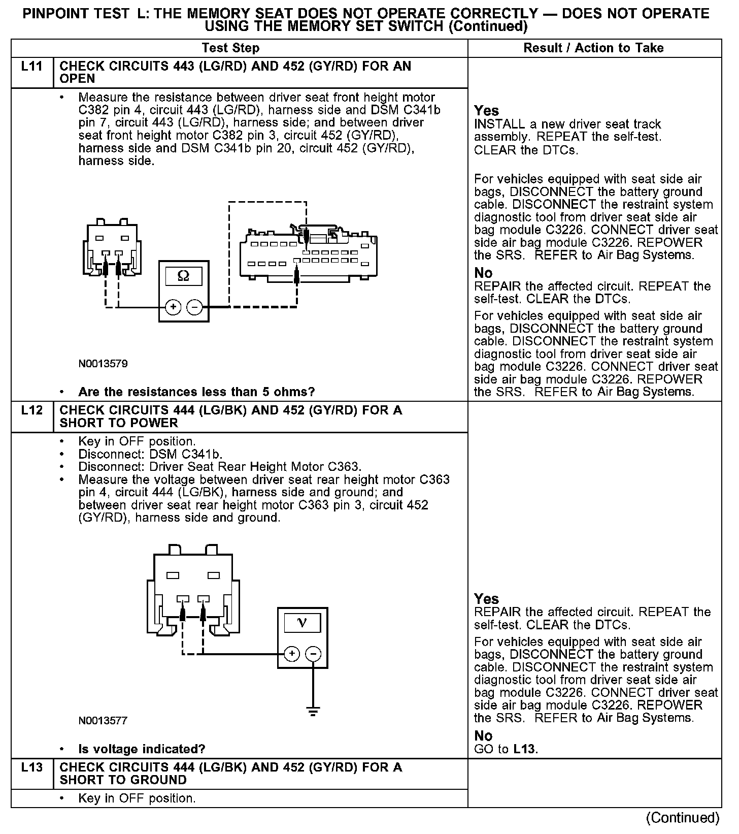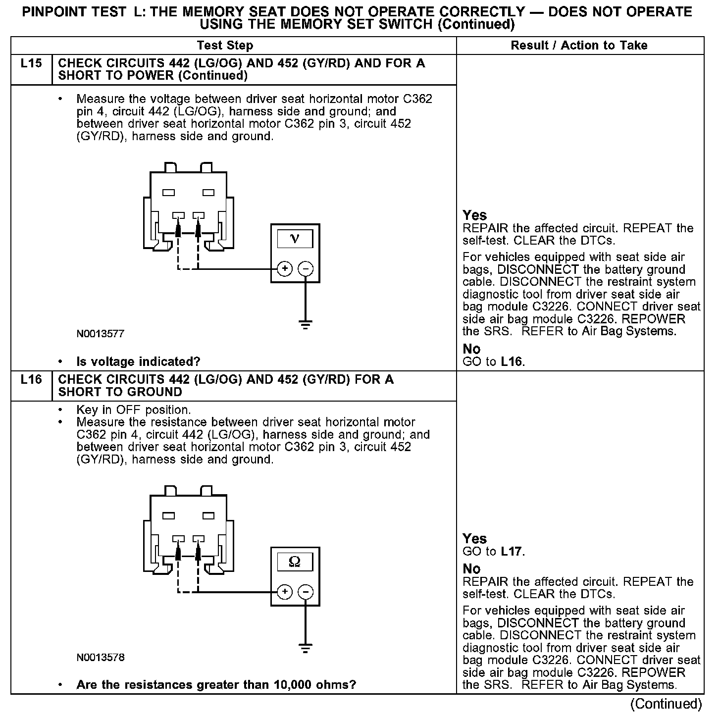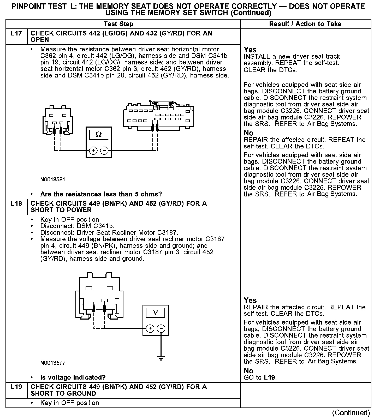 PINPOINT TEST L: THE MEMORY SEAT DOES NOT OPERATE CORRECTLY - DOES NOT OPERATE USING THE MEMORY SET SWITCHL1-L2: