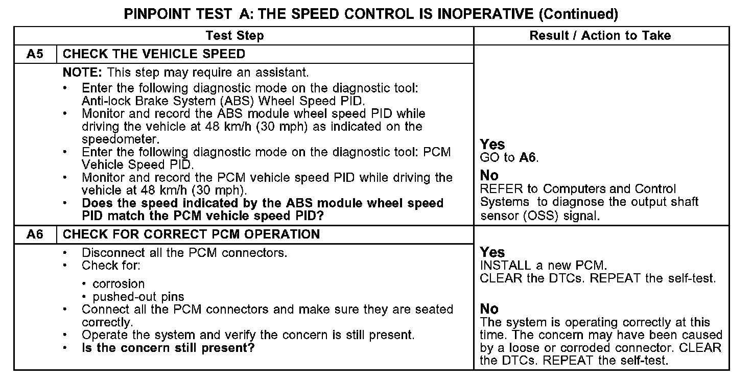 PINPOINT TEST A: THE SPEED CONTROL IS INOPERATIVEA1-A4:
