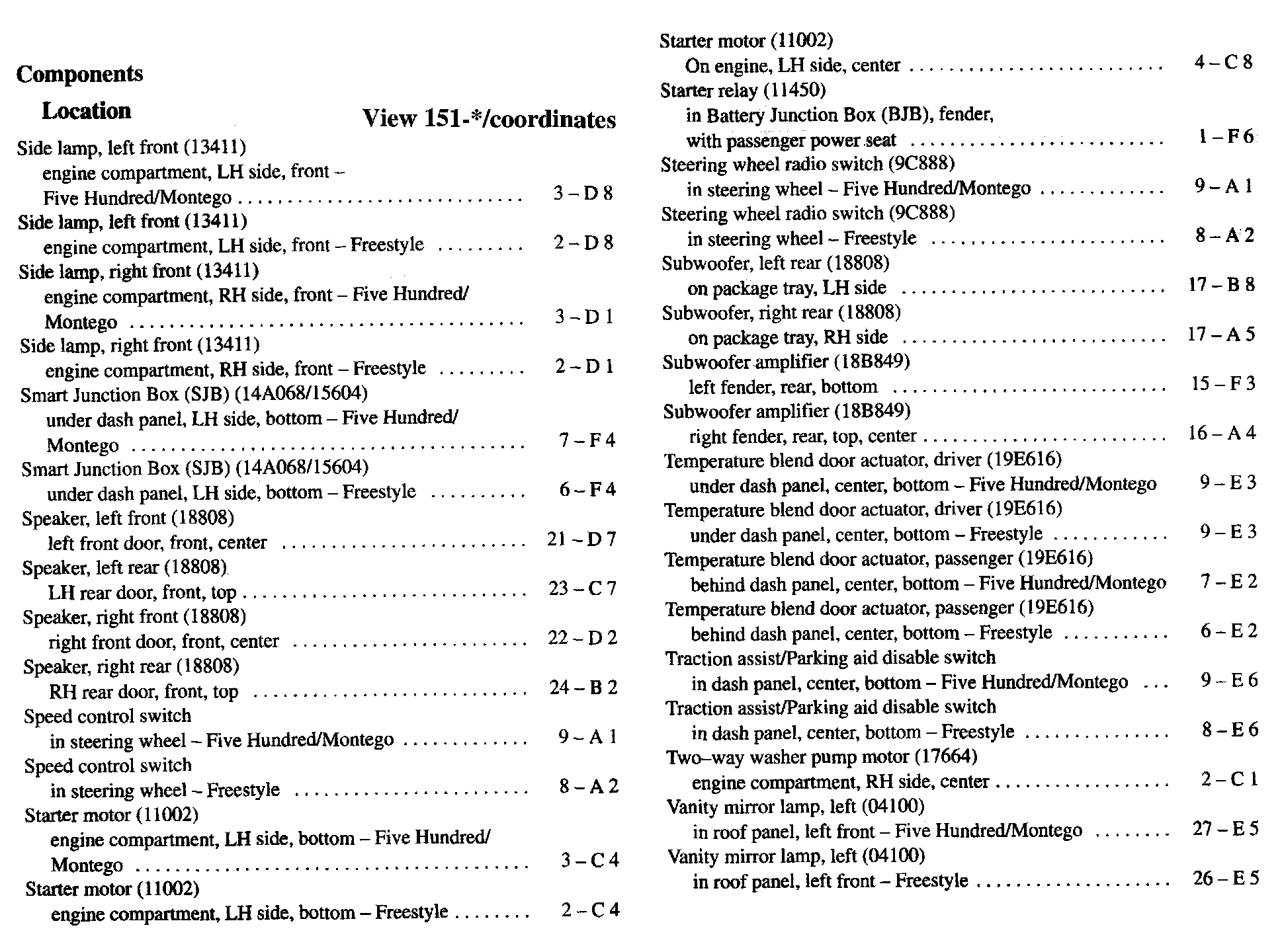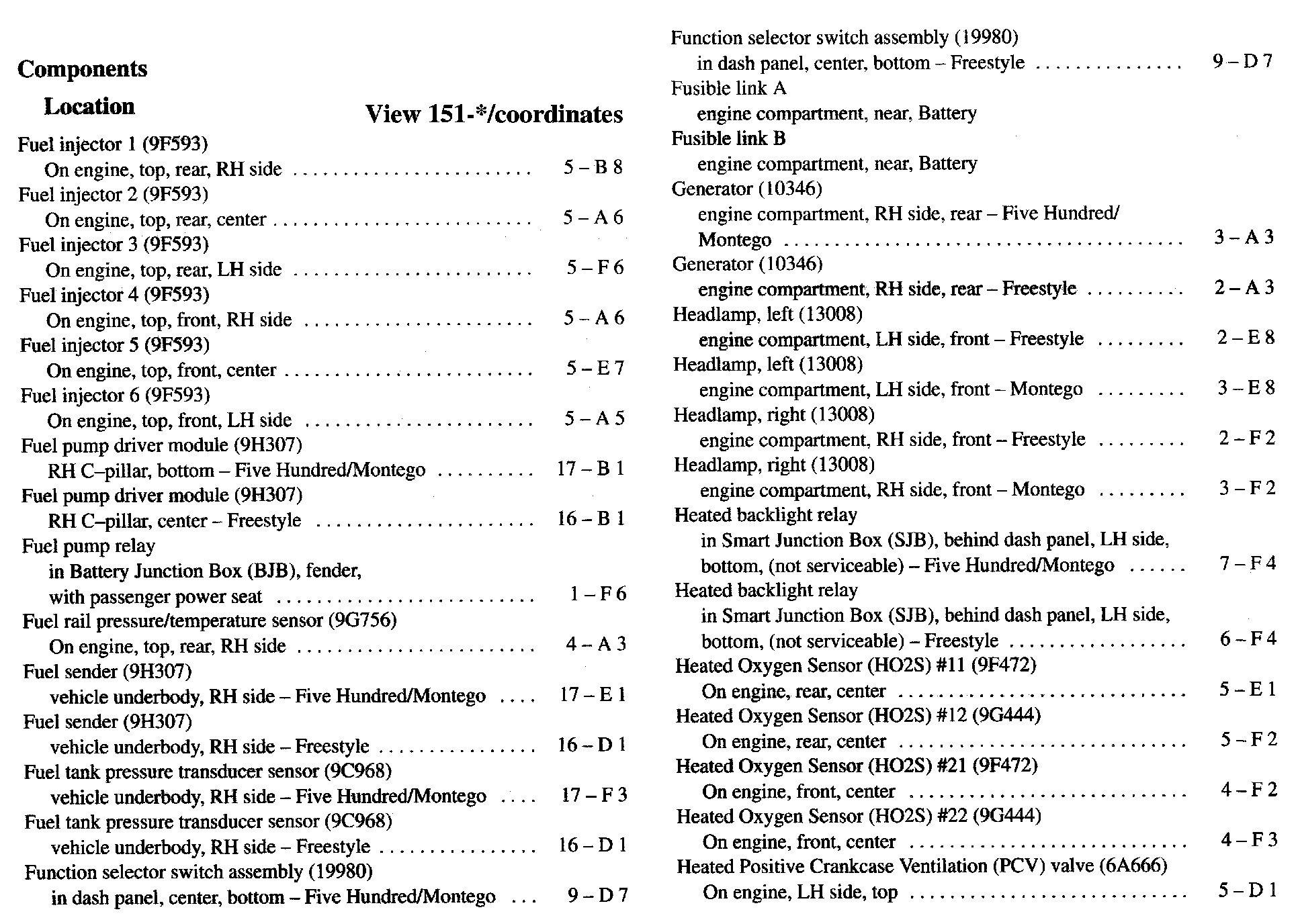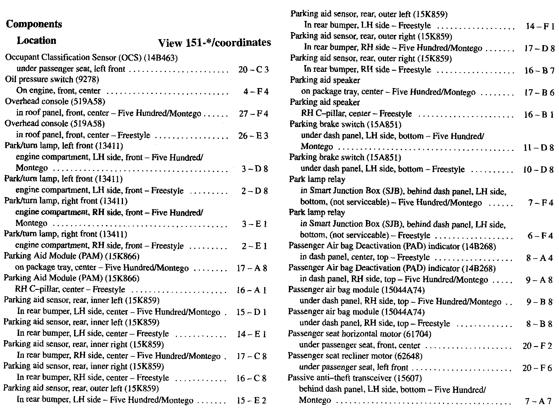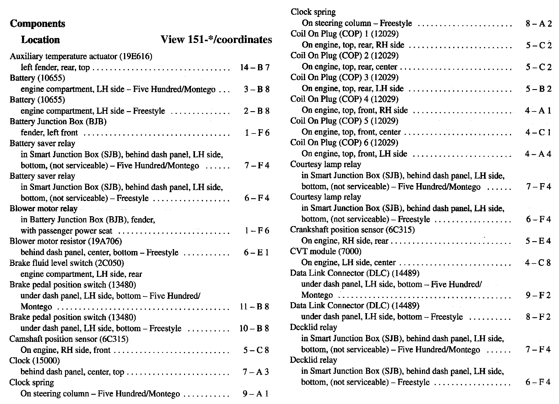 PLEASE NOTE: If a link on the Component Location Index to a View is not provided, that means that the Component and/or View in question does NOT apply to the vehicle model selected.
