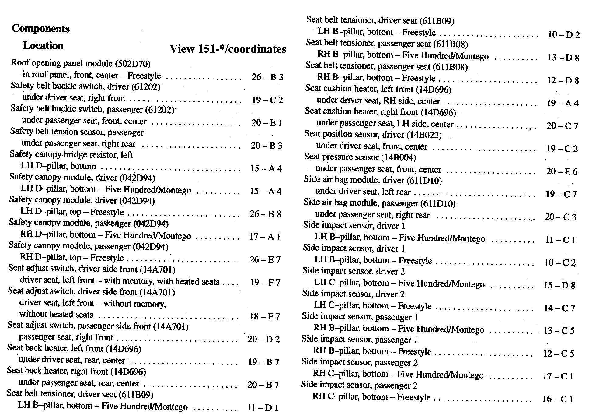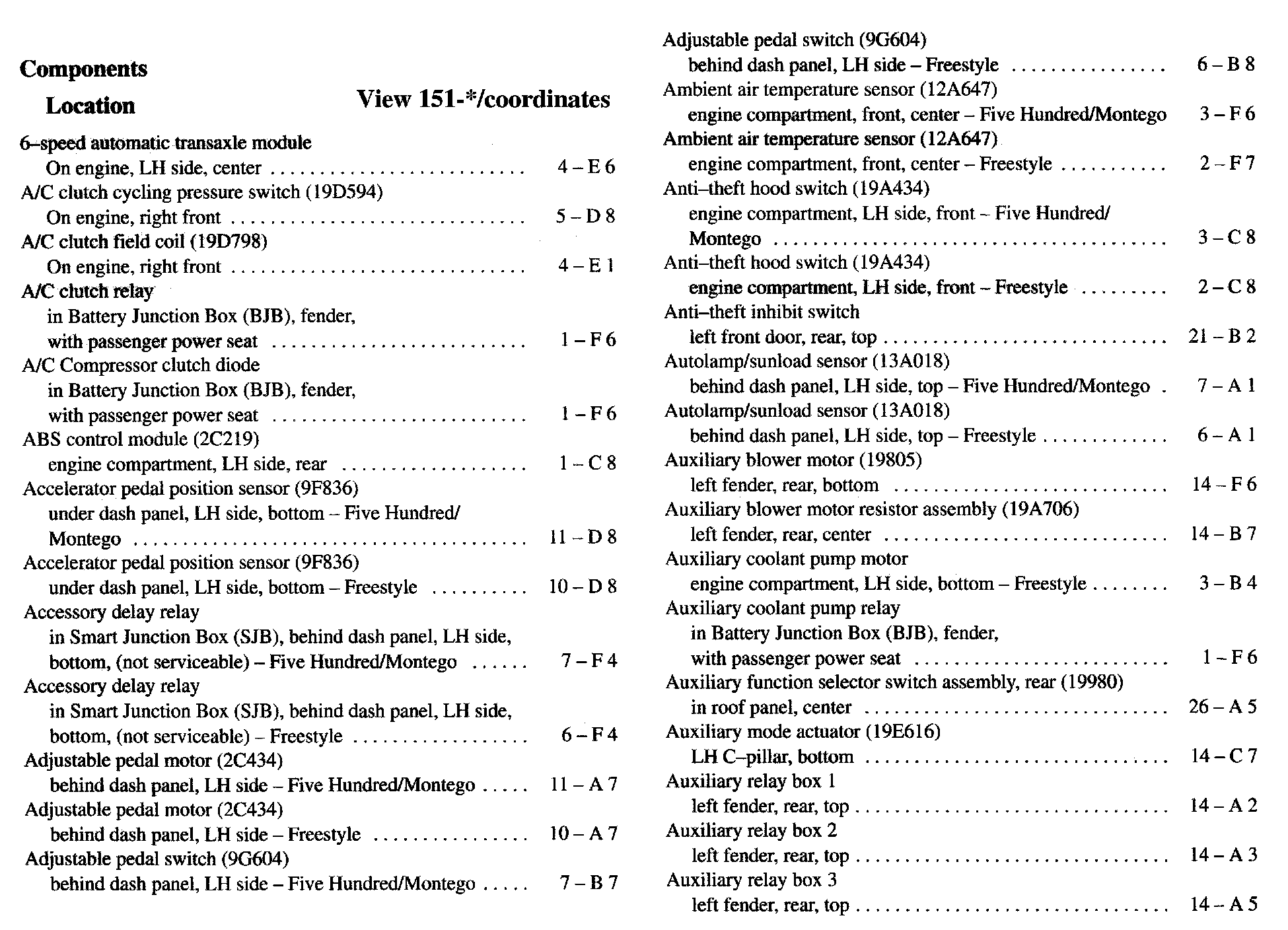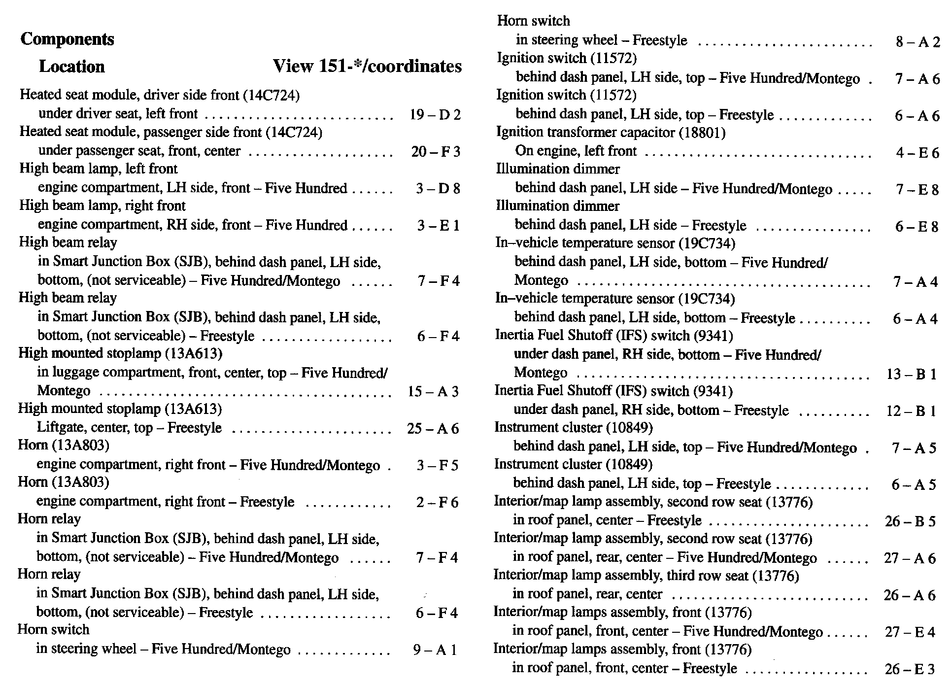 PLEASE NOTE: If a link on the Component Location Index to a View is not provided, that means that the Component and/or View in question does NOT apply to the vehicle model selected.