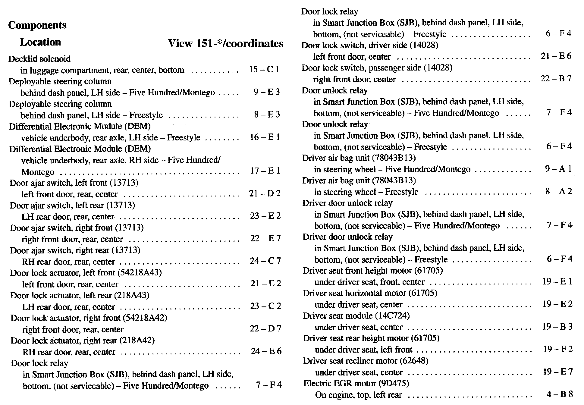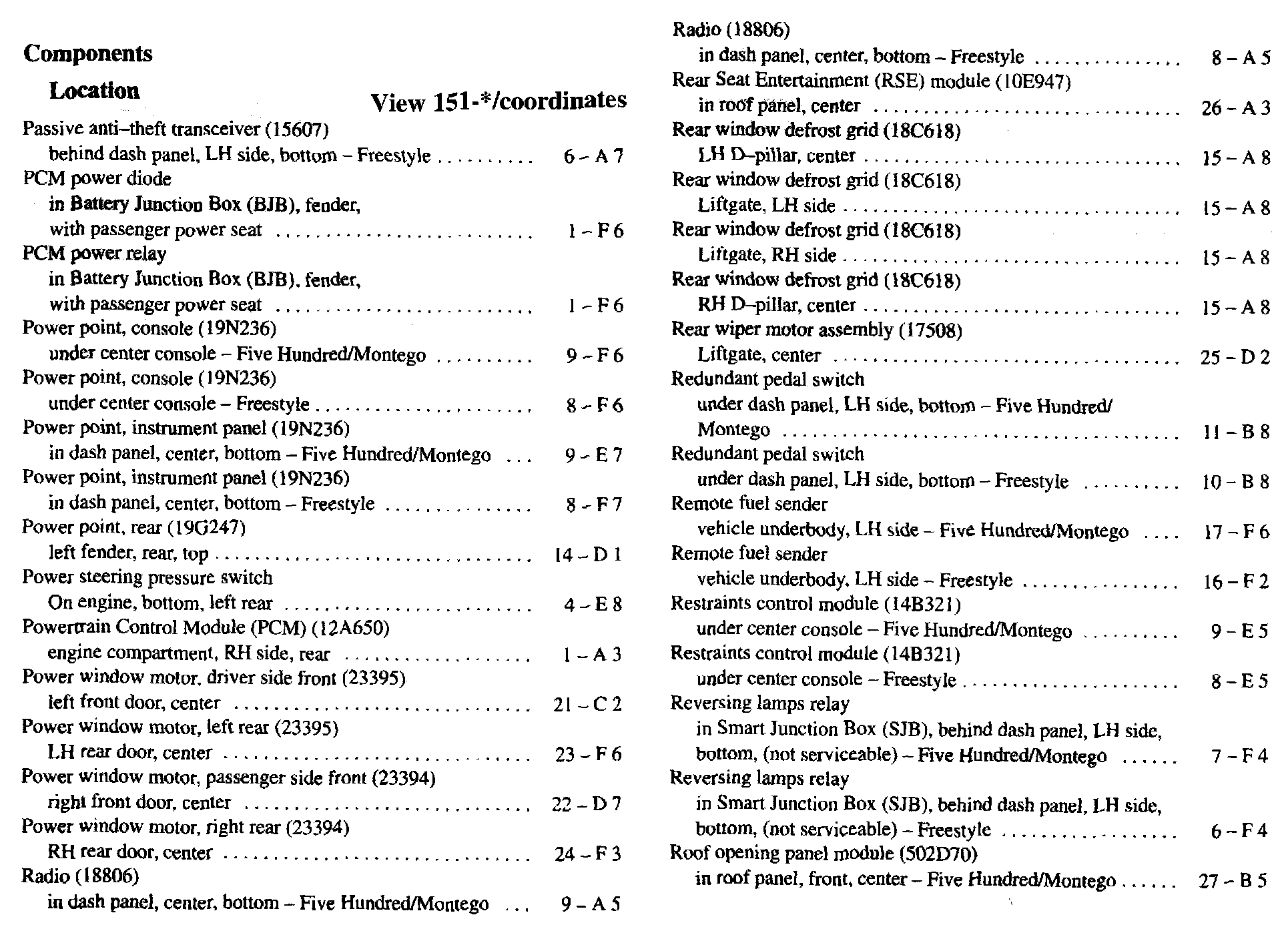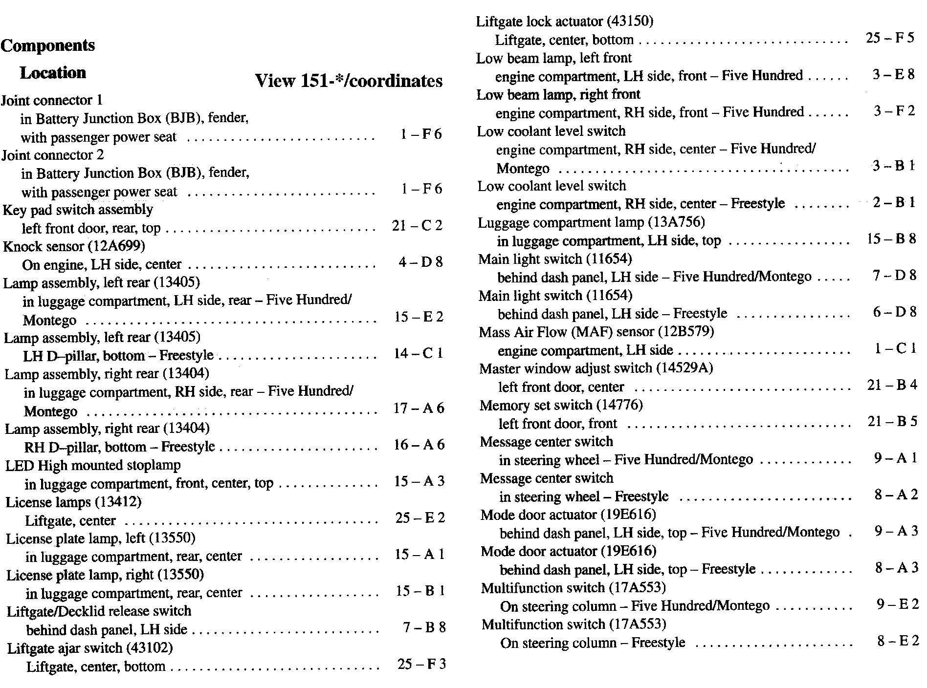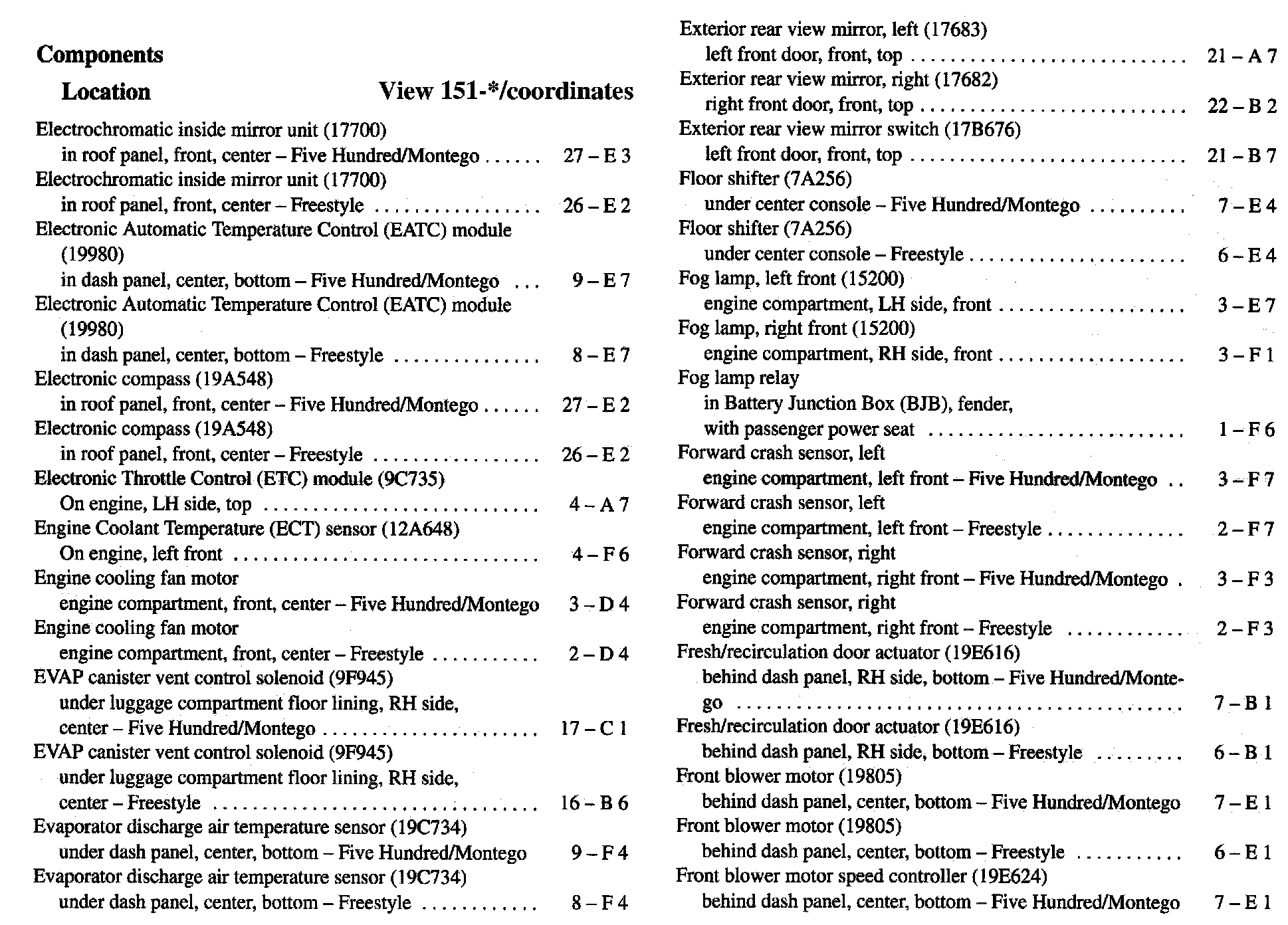 PLEASE NOTE: If a link on the Component Location Index to a View is not provided, that means that the Component and/or View in question does NOT apply to the vehicle model selected.