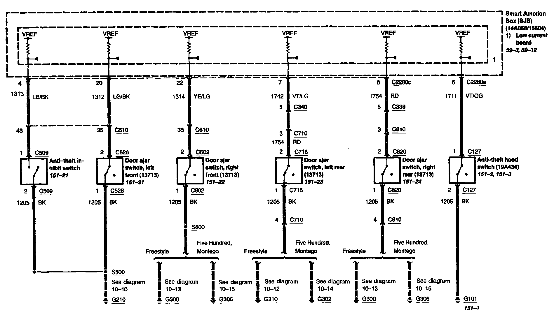 Locations: Location Views (reference numbers starting with 151-) referred to within these diagrams can be found at Component Location Views. Component Location Views