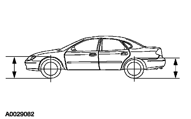 The vehicle ride height can be checked by measuring the distance between the lip of the fender(s) and the ground. The vehicle must be in a level, static ground position with full fluids and the fuel tank at least half full.