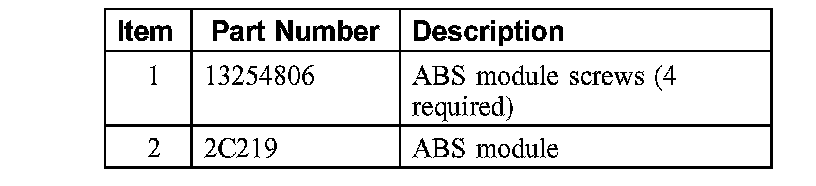 NOTE: When installing a new ABS module, it must be configured (using vehicle as built data) and calibrated. Follow the diagnostic tool directions for the calibration procedures. For module configuration, refer to Information Bus.