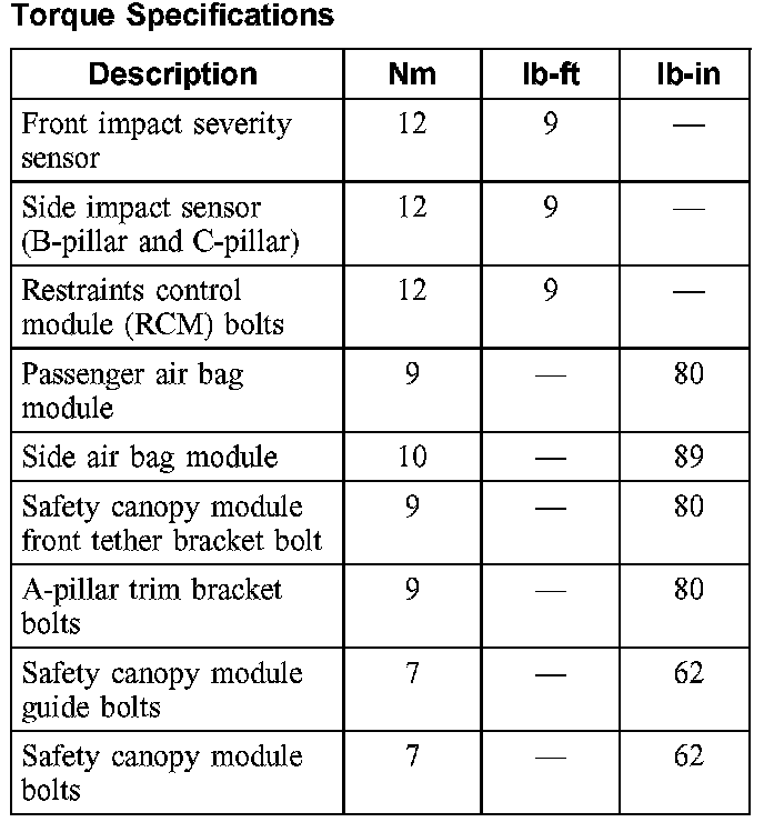 Torque Specifications: