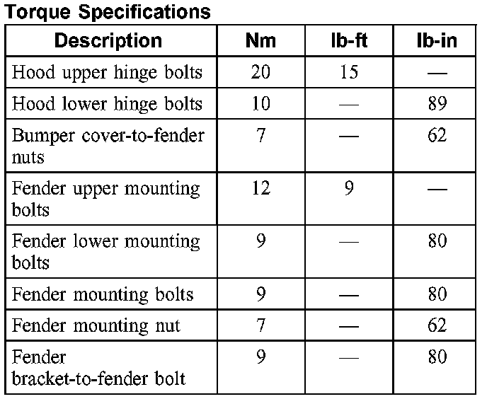 Torque Specifications: