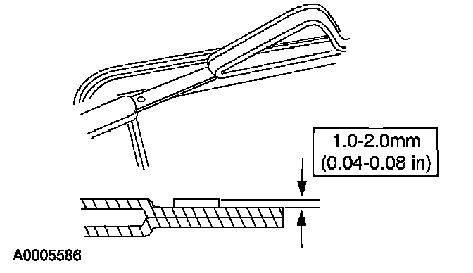 2. Using a clean applicator, apply the Urethane Metal Primer Essex U-413 meeting Ford specification WSB-M2G234-C to any exposed metal on the pinch weld. Allow 6 to 10 minutes to dry.