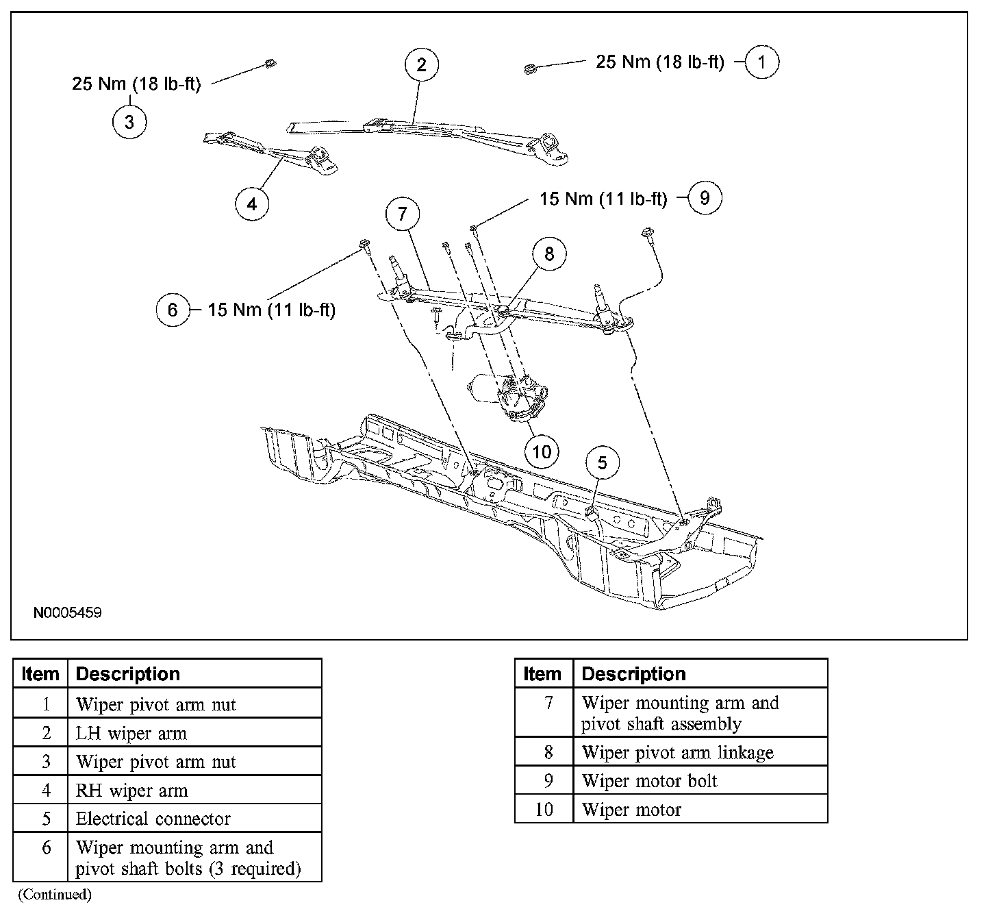 Wiper and Washer System - Exploded View, Front