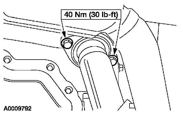 13. Verify the subframe-to-body alignment at both of the alignment holes.