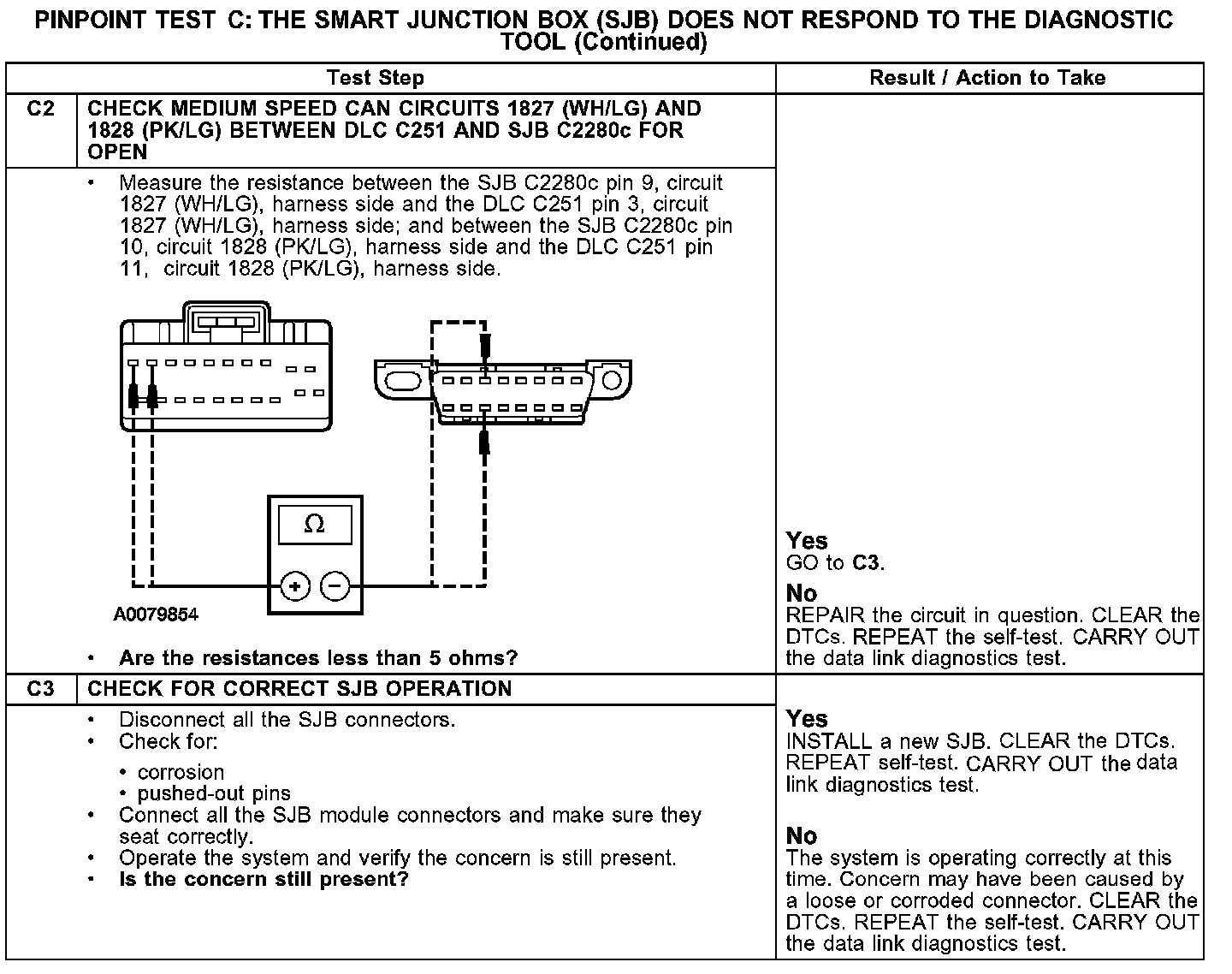 Test C: The Smart Junction Box (SJB) Does Not Respond to the Diagnostic Tool