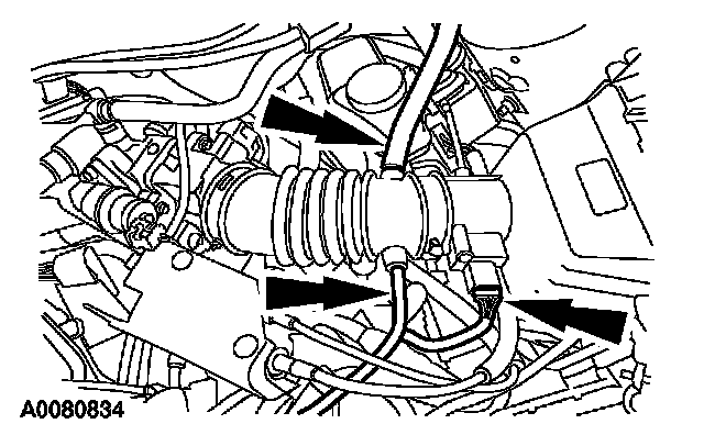 3. Disconnect the mass air flow (MAF) sensor and the breather tubes.