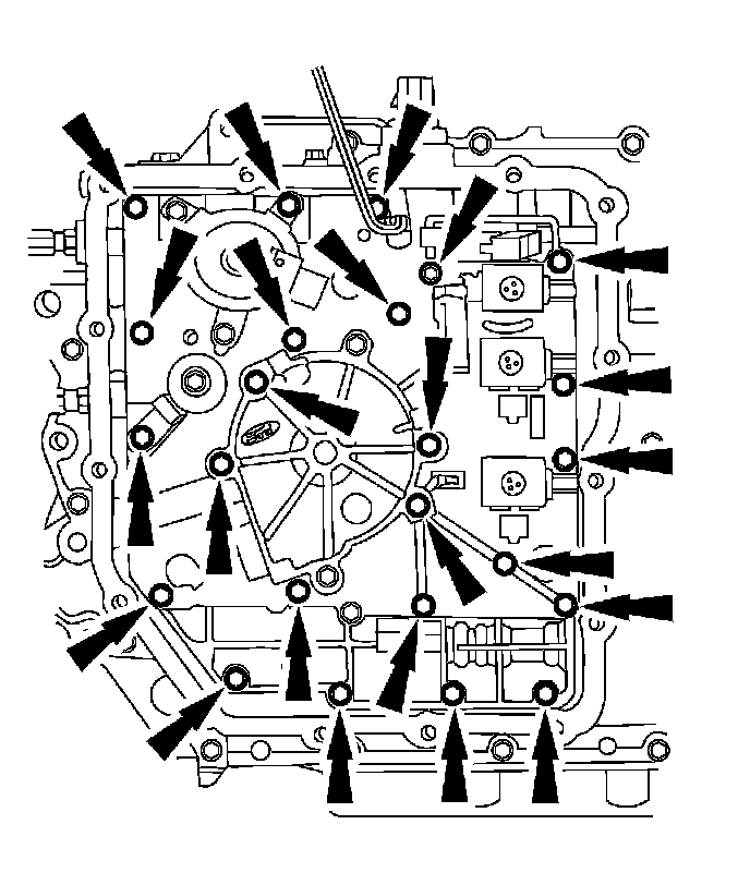3. CAUTION: Do not use the bolts to draw pump assembly and main control valve body onto the chain cover case. Component damage may occur.
