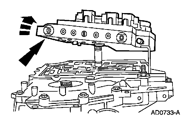 2. Rotate the pump assembly and main control valve body to connect the manual valve link with the manual valve.