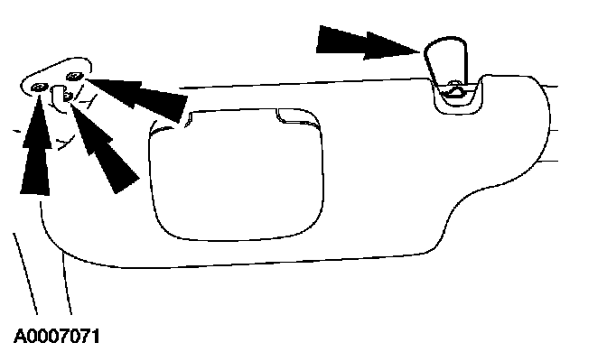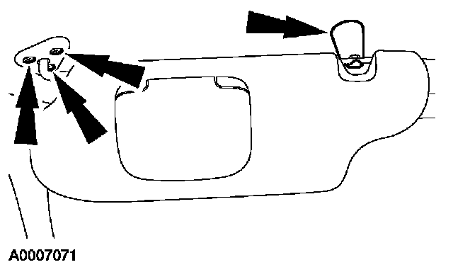 5. Remove the 8 screws, the LH and RH sun visors and the 2 sun visor clips.
