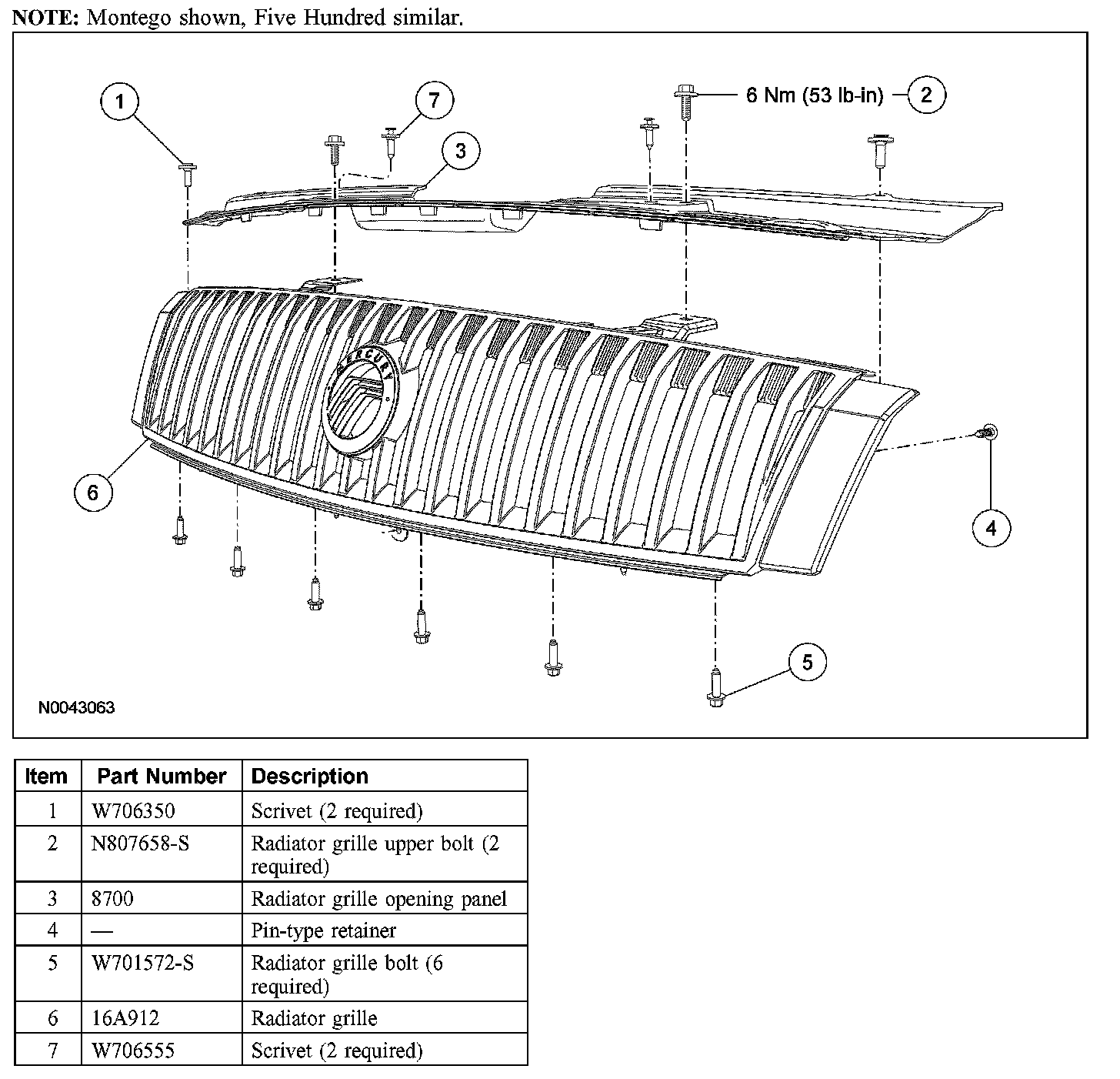 RADIATOR GRILLE-FIVE HUNDRED, MONTEGORemoval and Installation