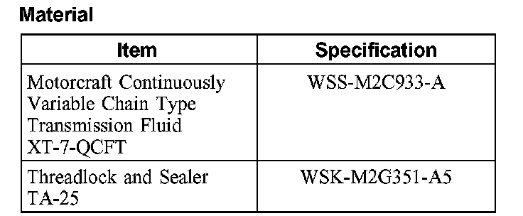 CAUTION: MERCON, MERCON V, MERCON SP, Motorcraft Premium Automatic Transmission Fluid and Motorcraft Continuously Variable Chain Type Transmission Fluid are not interchangeable transmission fluids. The use of any fluid other than what is recommended for this transmission will cause transmission damage.