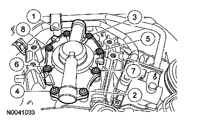 8. Using new bolts, install the primary cover. Tighten the bolts in the sequence shown in 2 stages: