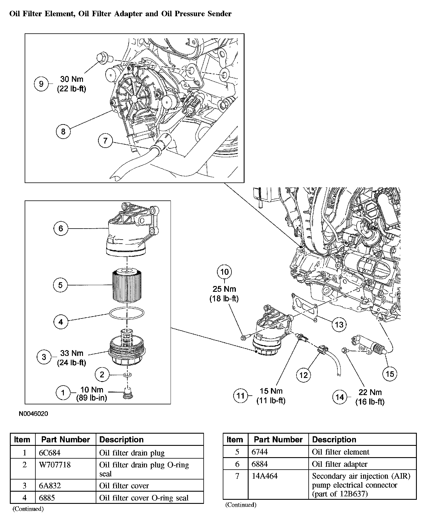 Oil Filter Element, Oil Filter Adapter and Oil Pressure Sender: