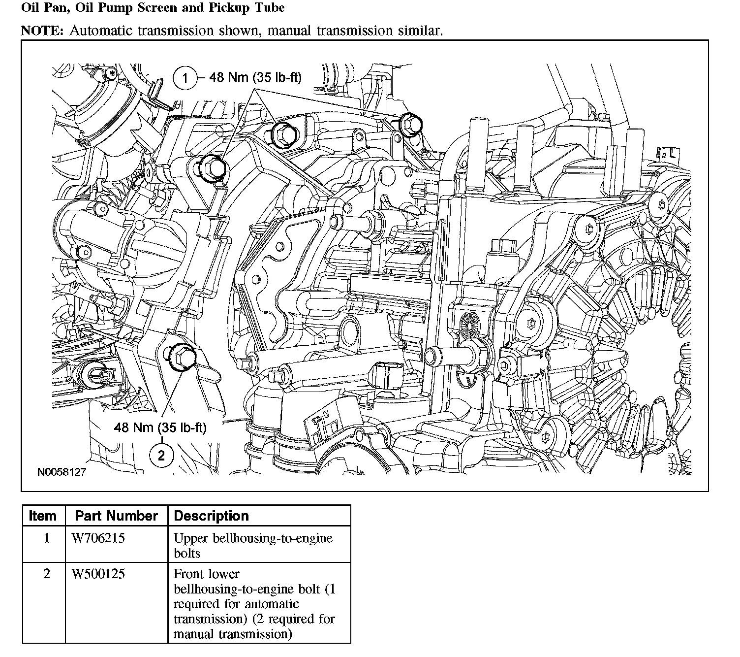 Oil Pan, Oil Pump Screen and Pickup Tube: