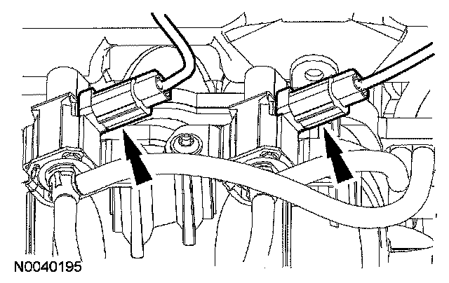 109. Attach the 2 wiring harness pin-type retainers to the intake manifold.