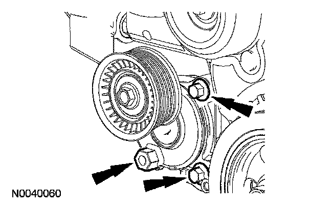 147. Install the accessory drive belt tensioner and the 2 bolts.