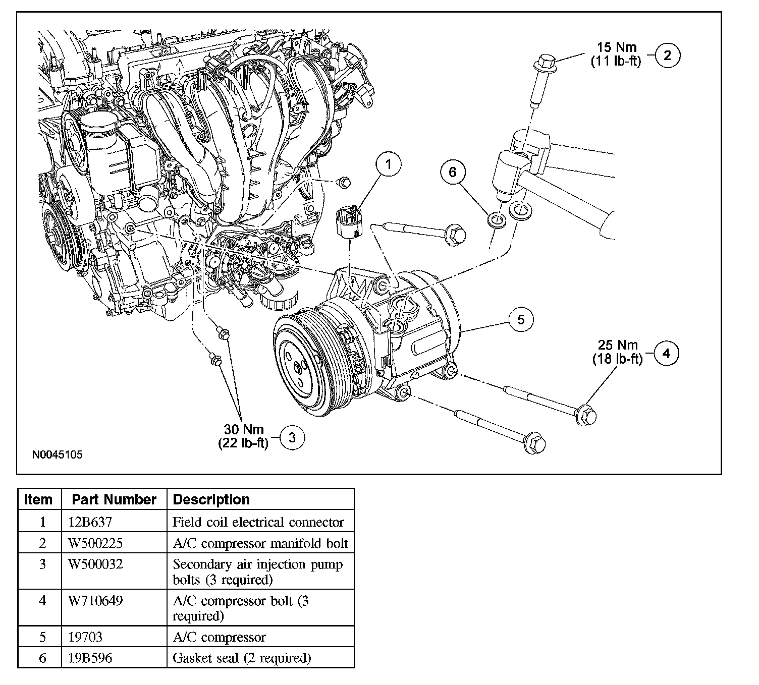 - If installing a new A/C compressor, the A/C clutch disc and hub, A/C compressor pulley and A/C clutch field coil must be inspected and transferred from the old unit to the new unit if suitable for reuse.