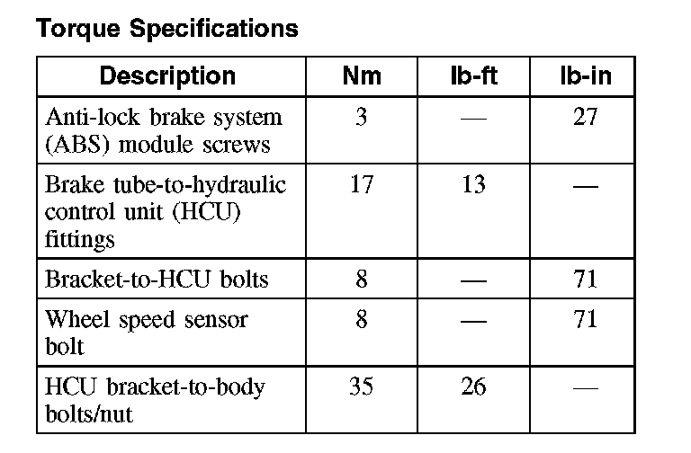 Torque Specifications: