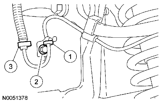 7. Position the brake line into the retaining clips at the rear of the No. 2 crossmember.