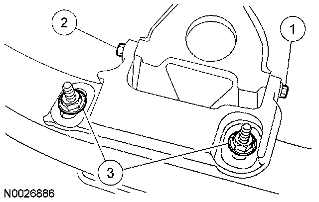 5. CAUTION: The bolts must be tightened in the sequence shown, or damage to the crossmember bracket may occur.