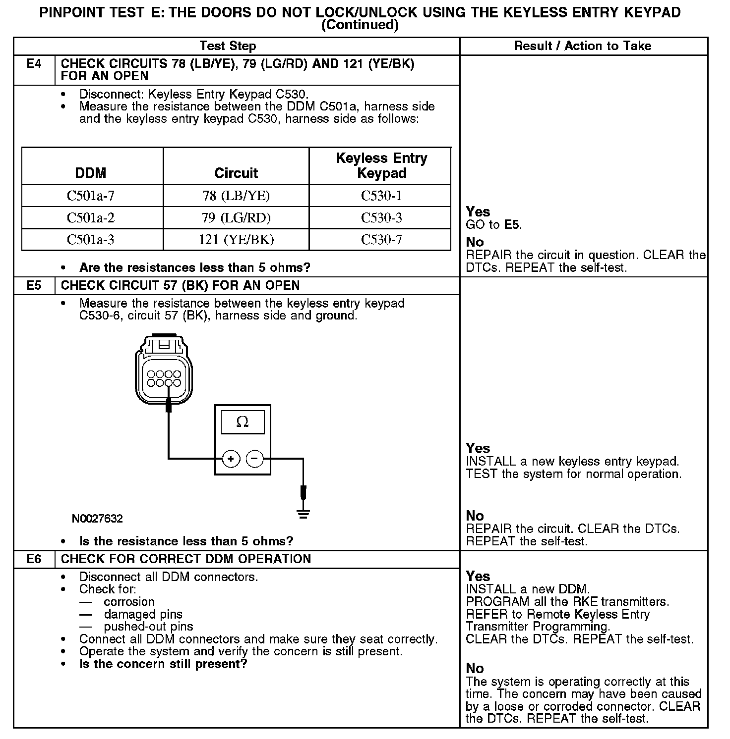 PINPOINT TEST E: THE DOORS DO NOT LOCK/UNLOCK USING THE KEYLESS ENTRY KEYPADNormal Operation