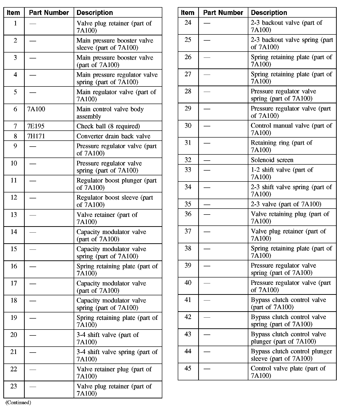 Main Control Valve Body - Disassembled View (Part 2):