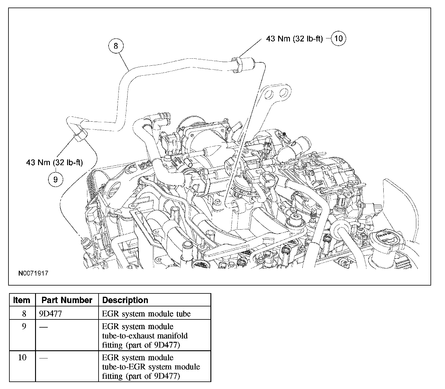 - To install, tighten to 43 Nm (32 lb-ft).