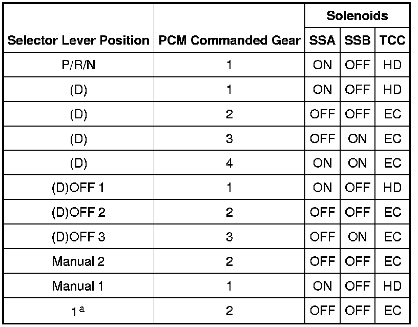 Solenoid Operation Chart