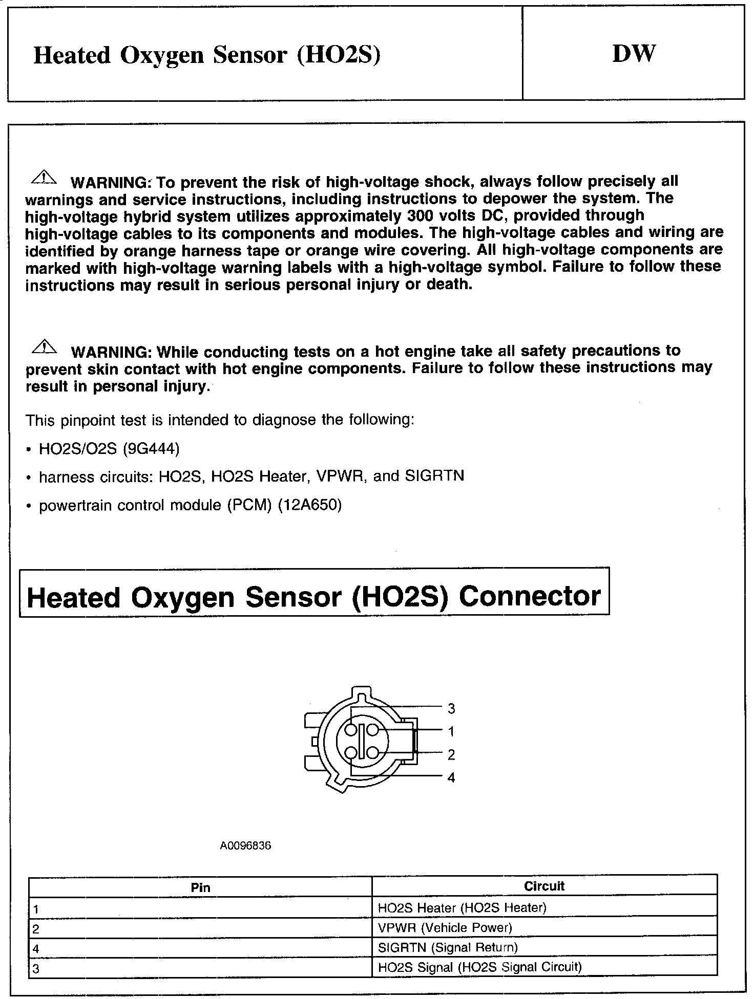 PINPOINT TEST DW: HEATED OXYGEN SENSOR (HO2S)