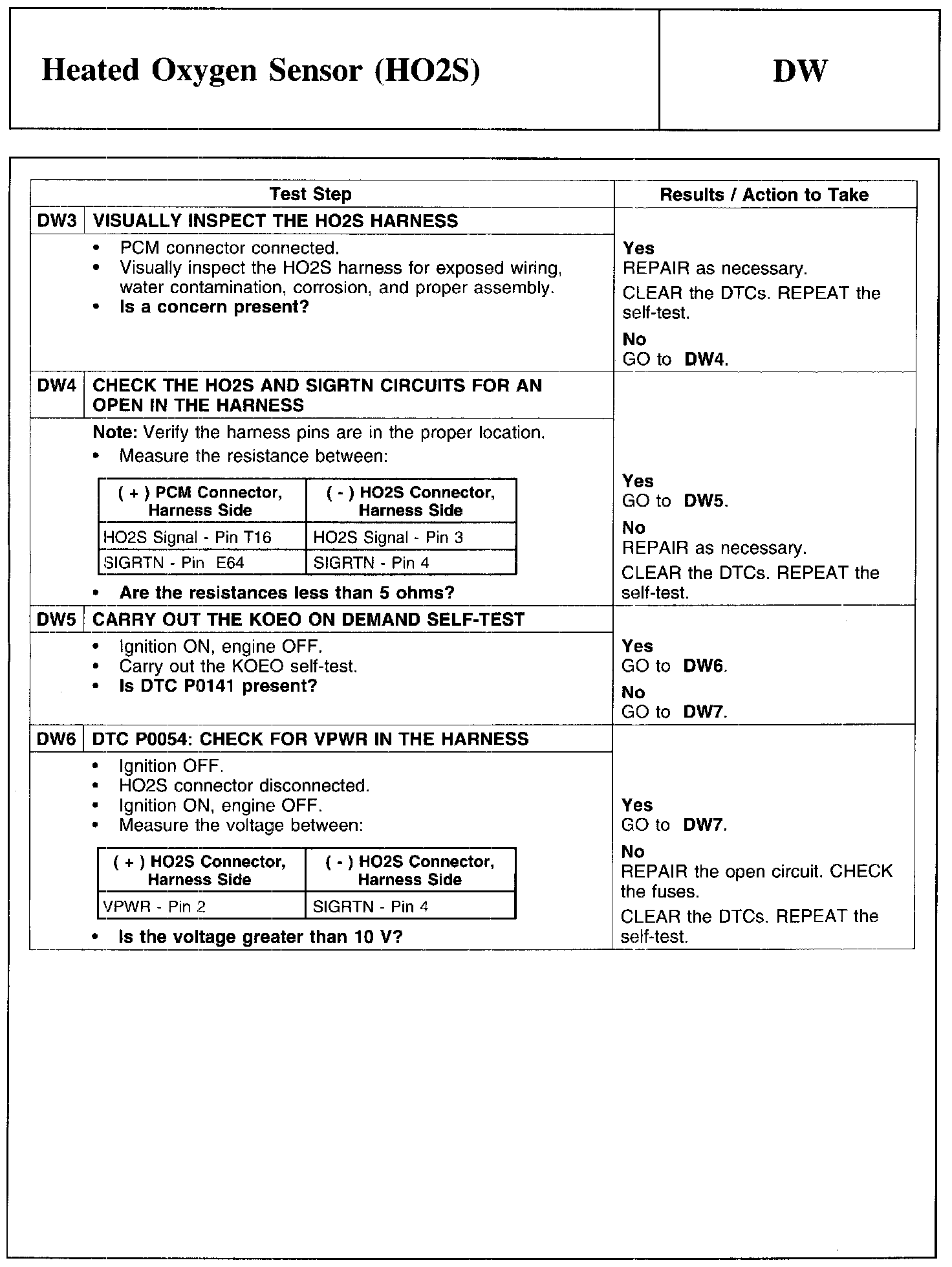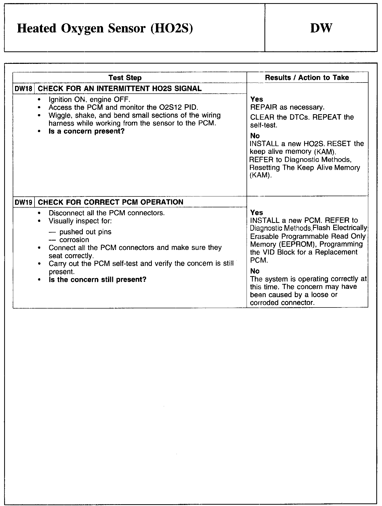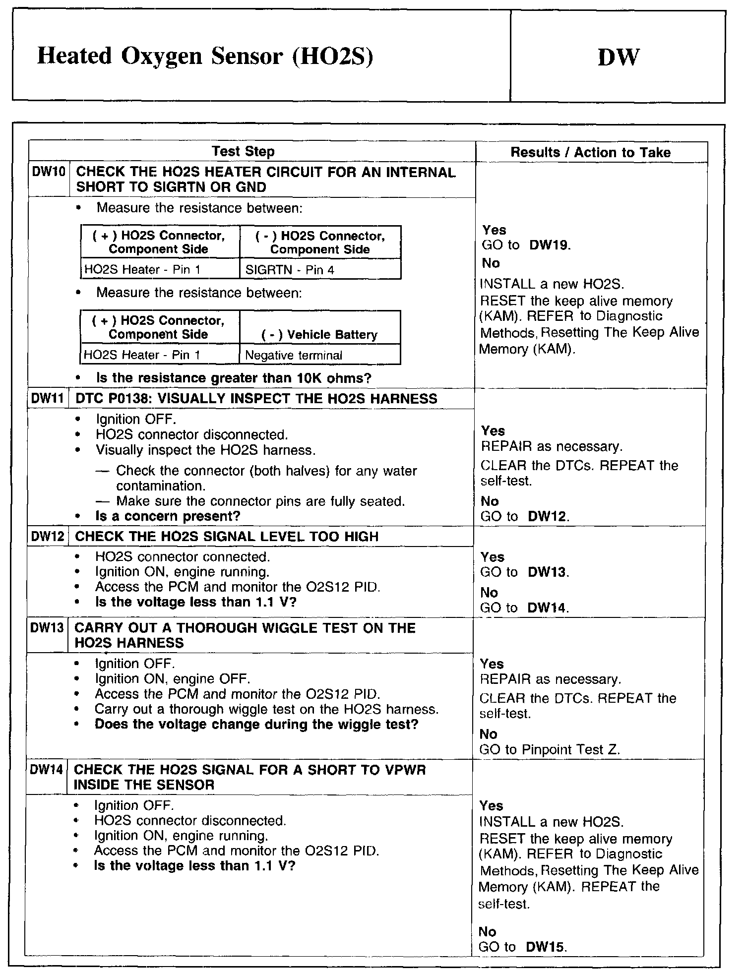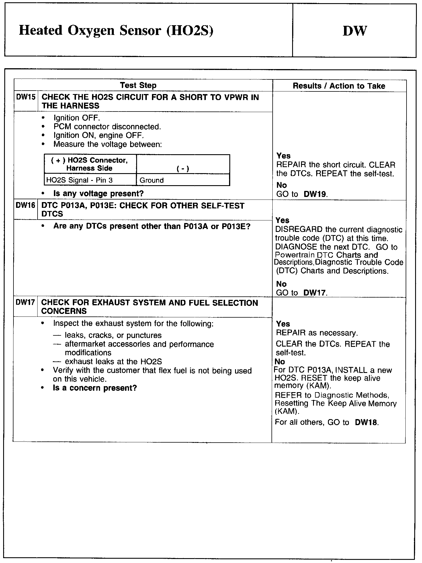 Test DW: Heated Oxygen Sensor (HO2S)